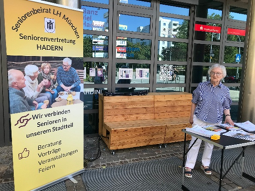 Damit wir Sie und Ihre Interessen vertreten können, sollten wir uns gegenseitig kennen. Uns liegt daher sehr daran, uns mit unseren Aktivitäten bei den Senioren im Bezirk bekannt zu machen. Unser Flyer (siehe Link) fasst für Sie die wichtigsten Informationen, die Kontaktdaten und Hinweise zu regelmäßigen Veranstaltungen zusammen. Gern stellen wir uns auch persönlich vor, so z.B. bei der Mitmachbank vor Guardini90.